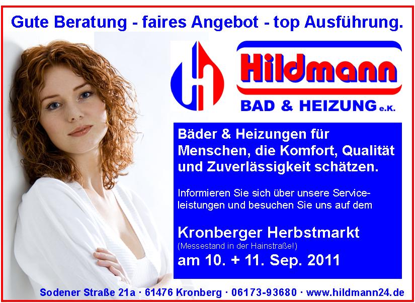 Einladung zum Kronberger Herbstmarkt am 10. + 11. Sep. 2011 Informieren Sie sich an unserem Messestand über moderne Heiztechnik und unsere weiteren Serviceleistungen. Bäder & Heizungen für Menschen, die Komfort, Qualität und Zuverlässigkeit schätzen. Mein Mitarbeiterteam und ich freuen uns auf Sie! |